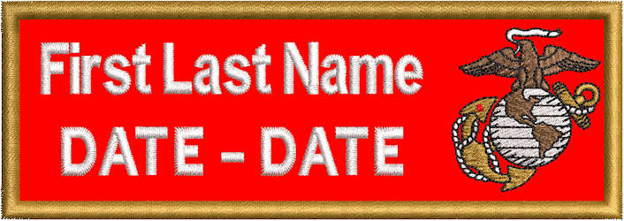 In Memory Of EGA - NAME and YEAR Embroidered on our RED or Black Polytwill material.. Approximate size 5in W x 1.75in H