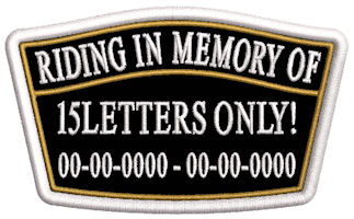 Riding In Memory Of Plaque Patch - Name and Dates